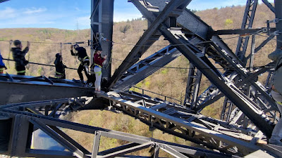 Това послание приканва любителите на екстремните изживявания да се разходят на сто метра височина по стоманената арка на най-високия железопътен мост в Германия – Мюнгстен (Müngsten Bridge Park).
